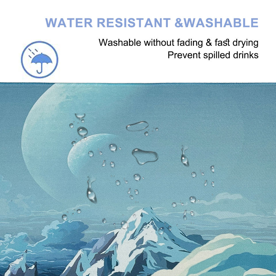 Tapis de bureau XXL personnalisé avec motif de montagnes bleues et nuages de neige, grand tapis de souris de jeu, impression de haute qualité, tapis de souris de jeu avec bord cousu