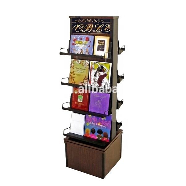 Étagères de présentation de bandes dessinées en bois et en métal sur mesure, présentoir de bandes dessinées rotatif