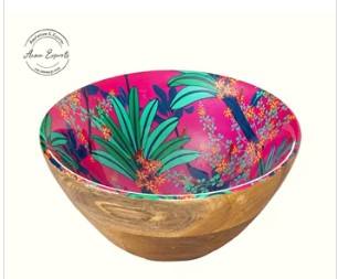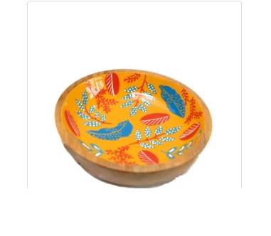 Bol de service en bois de manguier, motif feuille artistique, finition intérieure lisse, construction durable, vaisselle élégante pour cuisine et salle à manger – Vente chaude