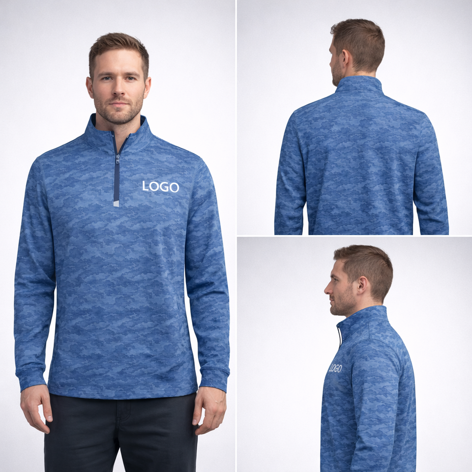 Sweat-shirts de sport pour homme, coupe ajustée, imprimé camouflage personnalisé, séchage rapide, respirant, léger, confortable, avec fermeture éclair 1/4.