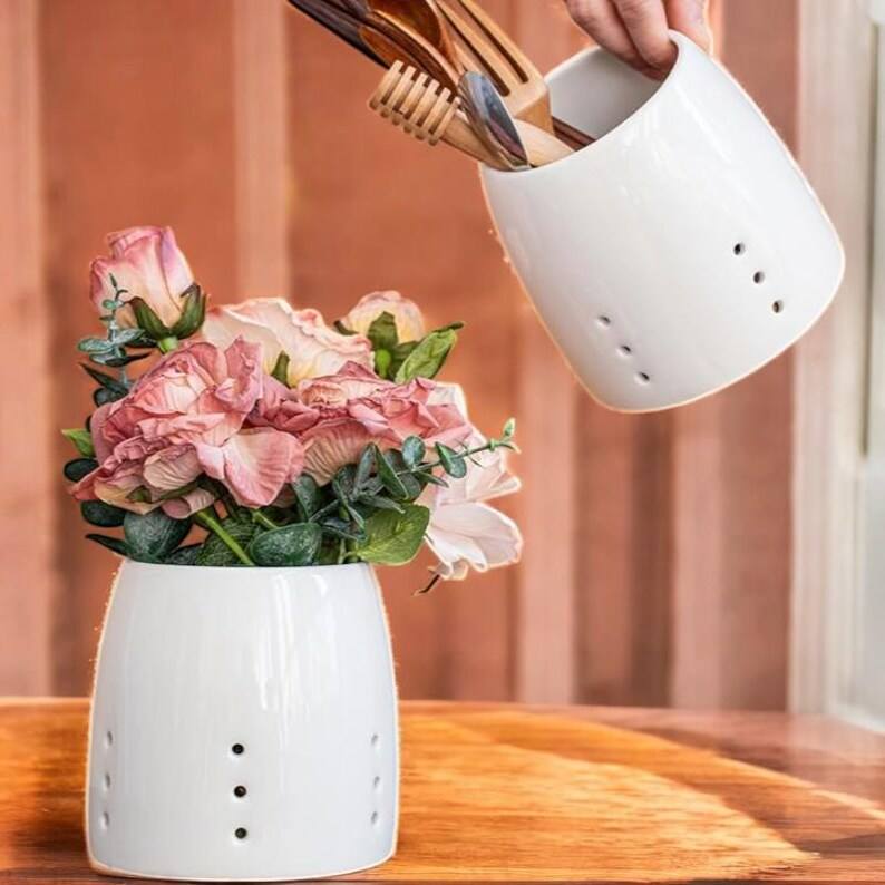 Pot à ustensiles en céramique sur mesure | Support pour cuillère et spatule de cuisine OEM | Organisateur d'outils de comptoir