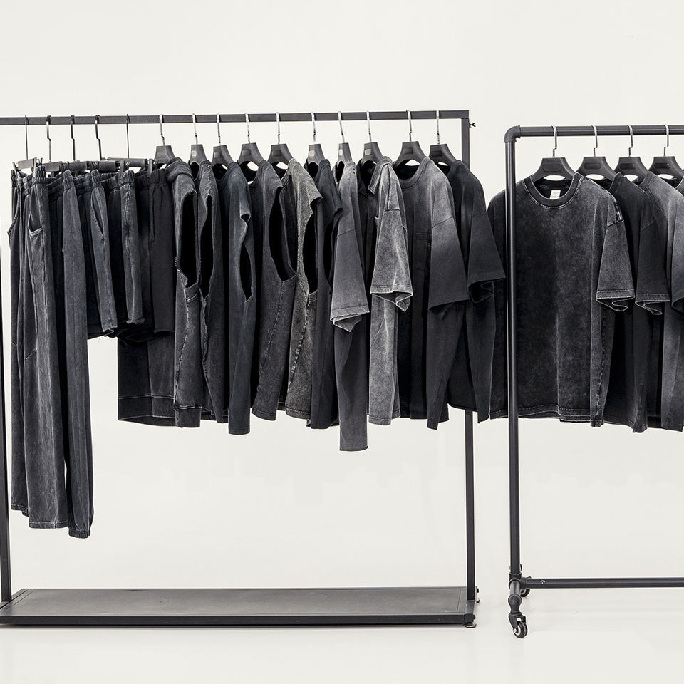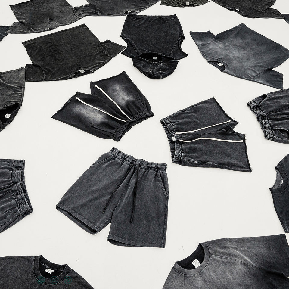 Shorts de sport et t-shirt unisexe en coton lâche sur mesure pour homme, effet délavé, surdimensionné, poids lourd 200 g/m², 100 % coton