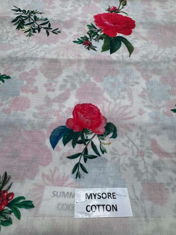 Tissu en coton Mysore pur imprimé numériquement sur mesure, fini léger et doux, pour vêtements et textiles de maison