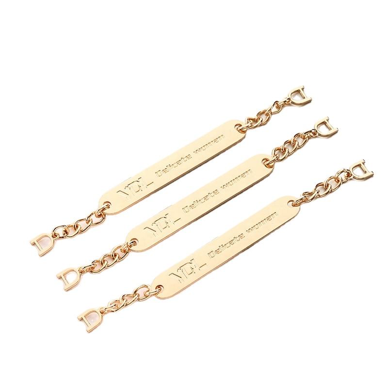 Nom du produit:Accessoires en alliage de zinc sur mesure, logo en métal doré pour vêtements