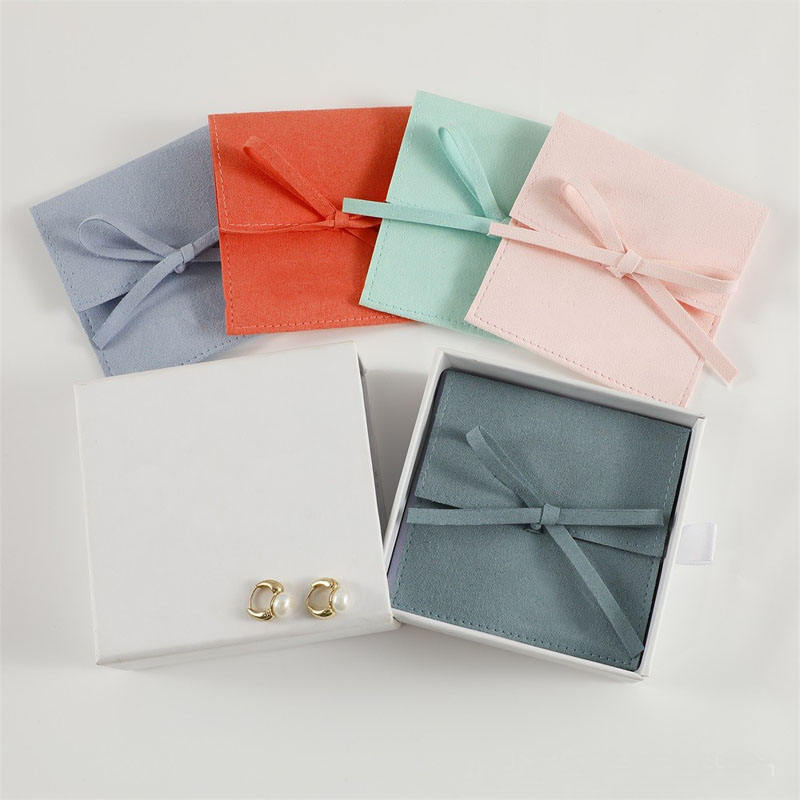 Boîte à bijoux écologique sur mesure, emballage de boîte à bijoux, pochettes en daim pour bijoux avec logo pour bracelet, boucles d'oreilles, collier