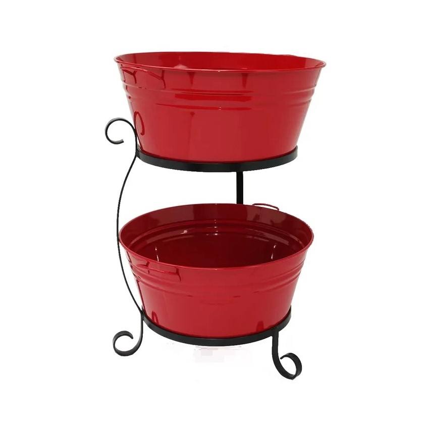 Grand support de baignoire en fer galvanisé émaillé de conception personnalisée avec deux baignoires rondes utilisé pour le stockage du vin, la présentation du vin de mariage