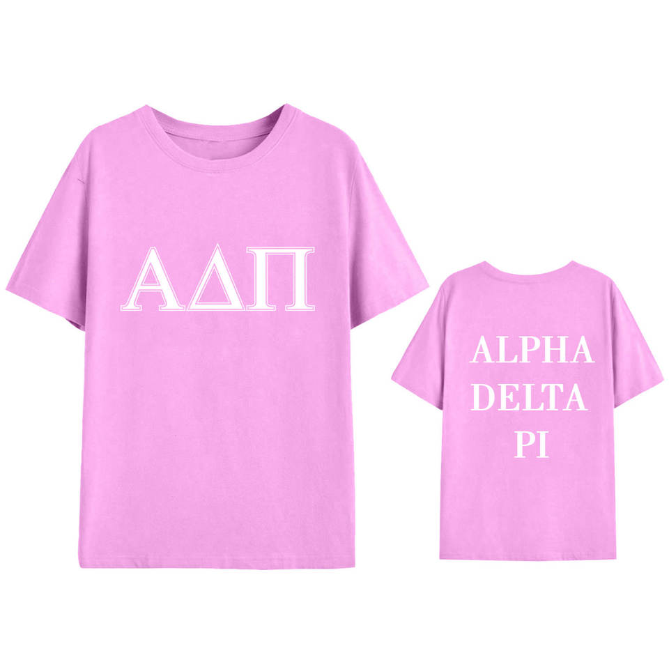 Conception personnalisée de mode O Neck Short Sleeve Sorority t-shirt à paillettes motif bas quantité minimale de commande Alpha Delta Pi femmes t-shirt