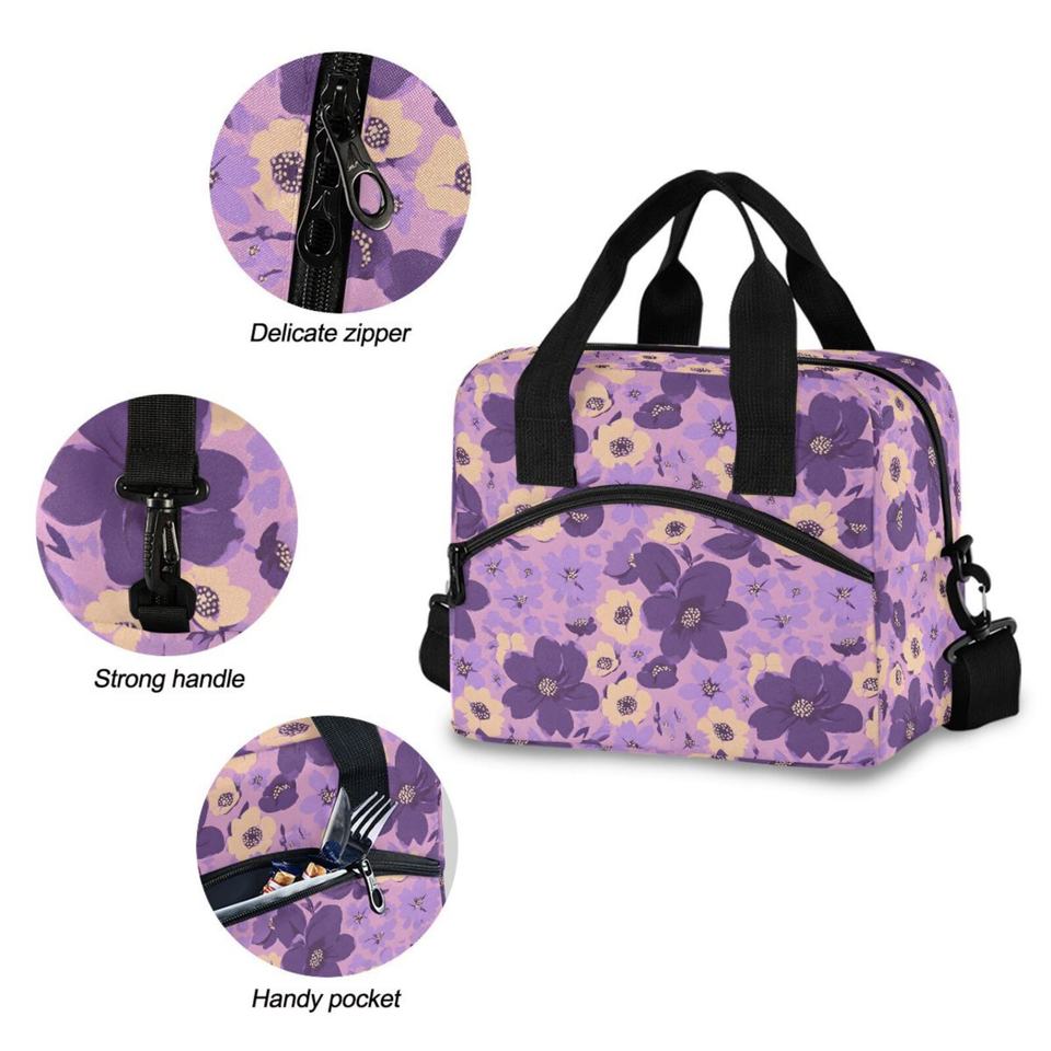 Sac à déjeuner isotherme écologique personnalisé avec motif floral, sac fourre-tout réutilisable pour le bureau, le pique-nique, imperméable et isotherme avec compartiments