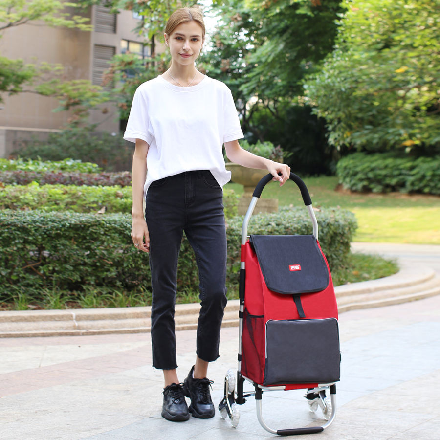 Conception personnalisée Logo gratuit Charge d'impression 50kg Chariot de supermarché pliable léger et robuste Chariot d'épicerie pliable