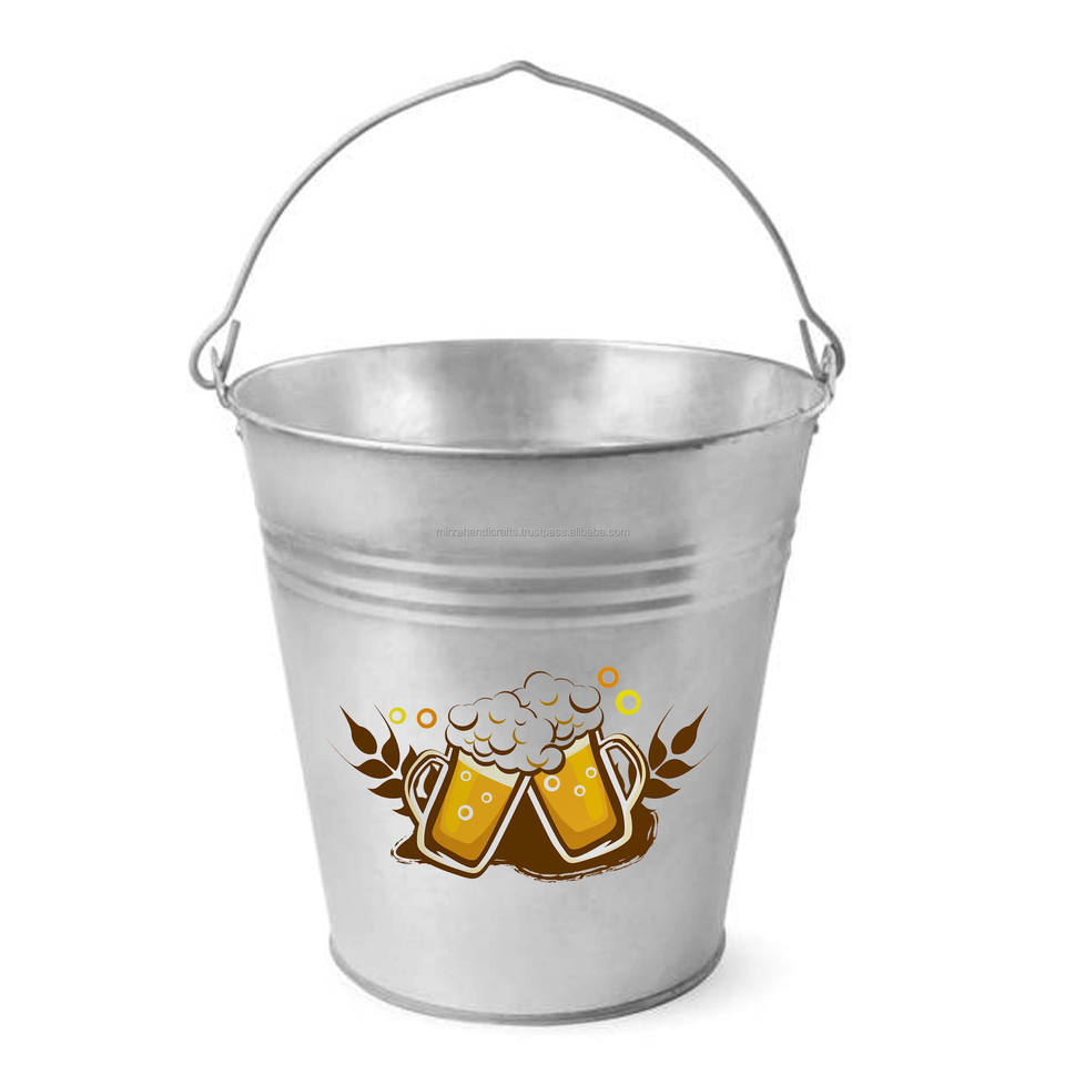 Conception personnalisée seau à glace fini galvanisé seau à glace de style européen sculpté épaissir en acier inoxydable baril à glaçons en métal