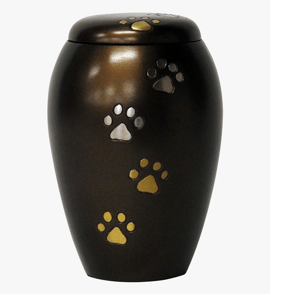 Urne funéraire pour animaux de compagnie en laiton avec empreinte de patte dorée sur mesure, finition noire brillante magnifique pour les cendres d'animaux de compagnie, fournitures funéraires, urne pour adulte