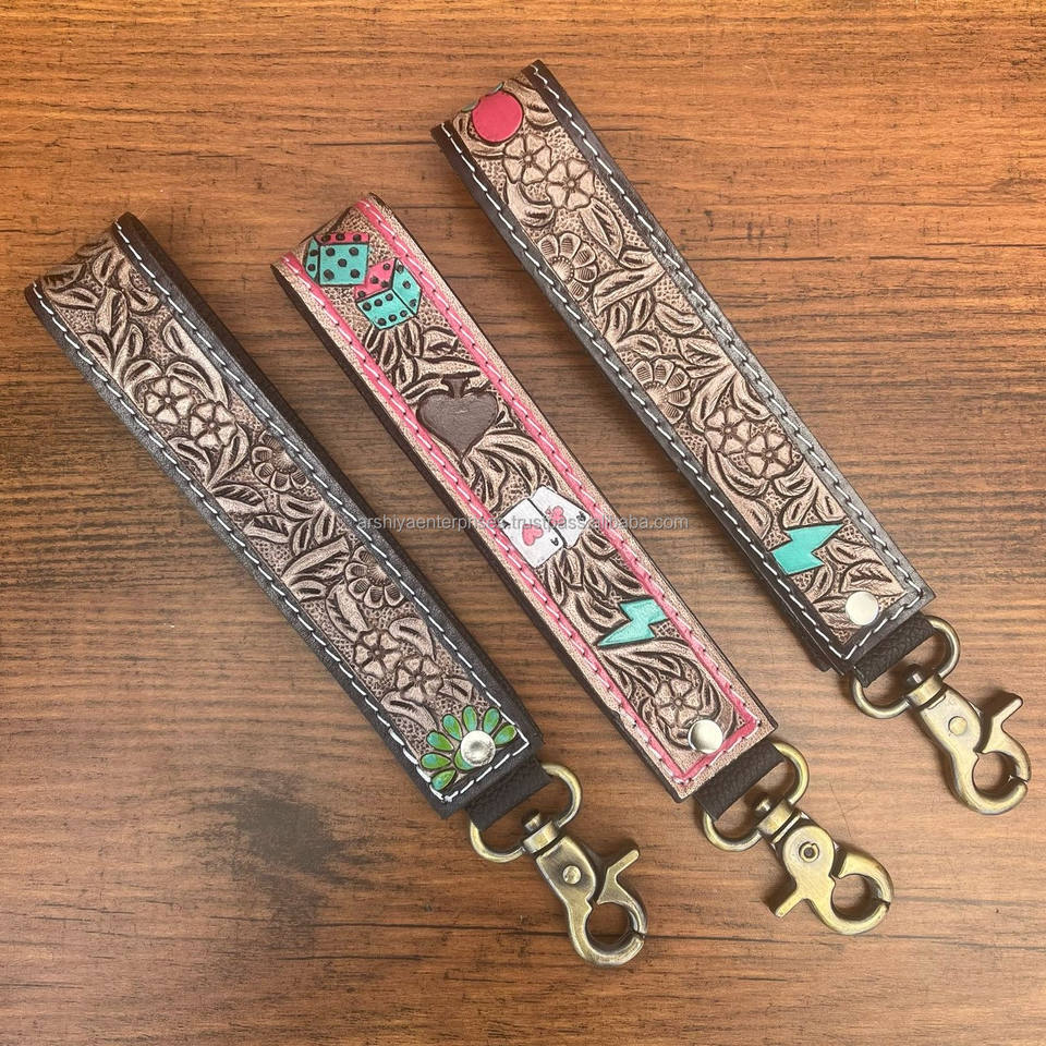 Nom du produit:Main taillée en cuir lanière Wristlet Keychain