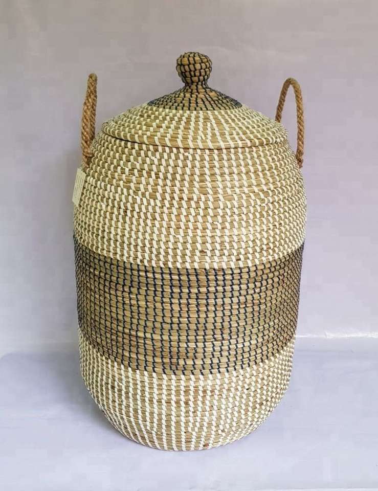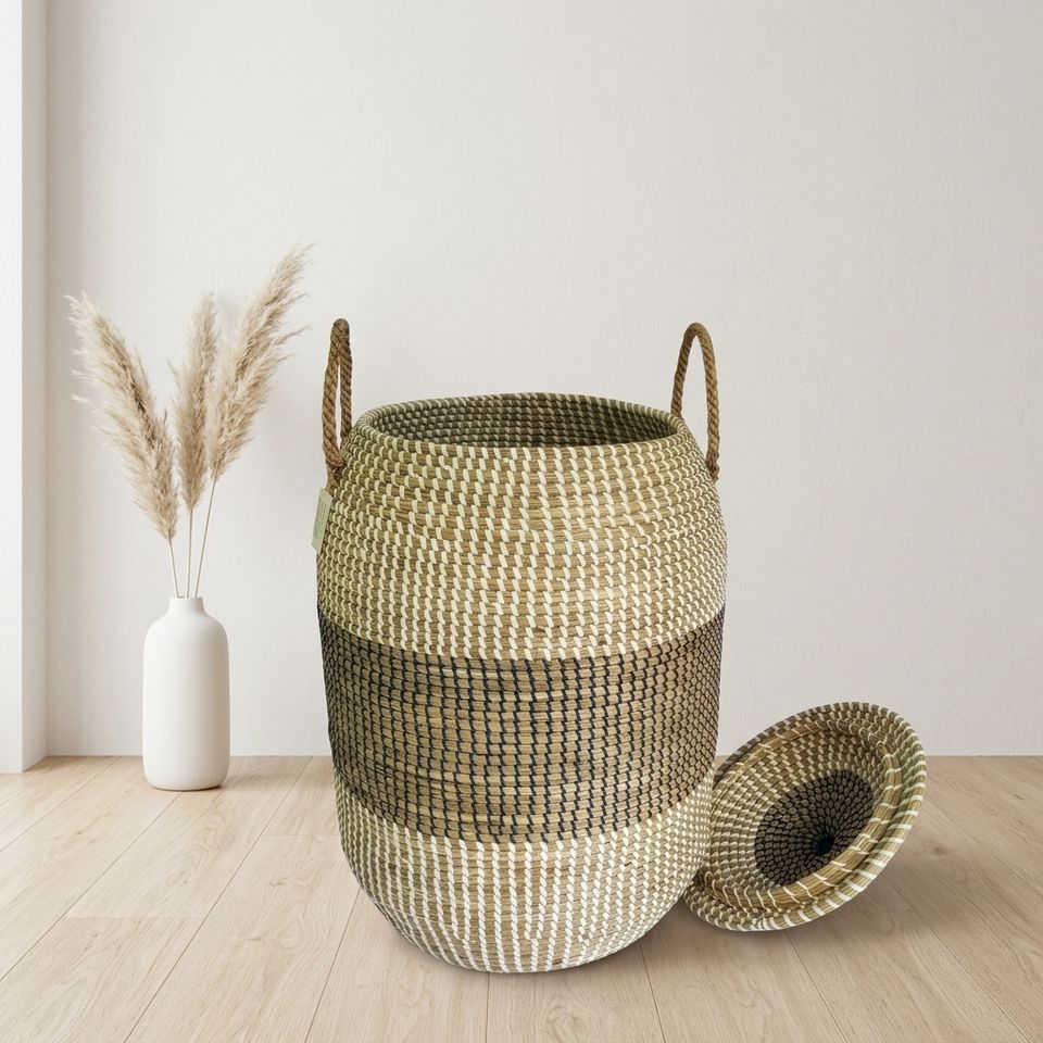 Panier à linge en jacinthe d'eau tissé à la main, design personnalisé, avec couvercle et poignées tressées, qualité export, durable