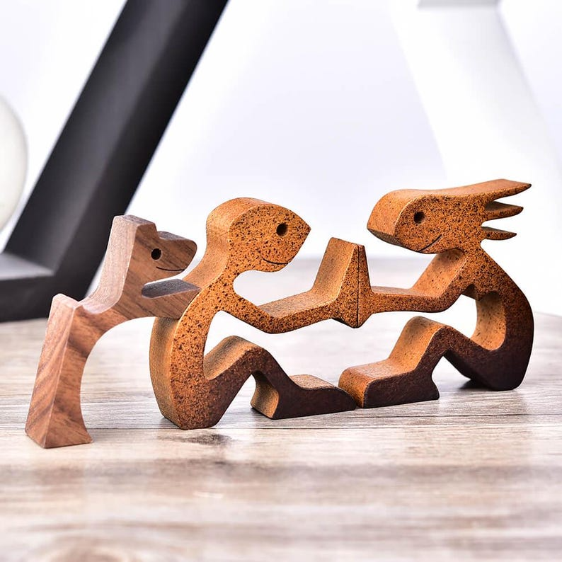 Statue d'amoureux en bois artisanale sur mesure, figurine de couple artistique, art déco, écologique pour la décoration de la maison, du bureau et de la table