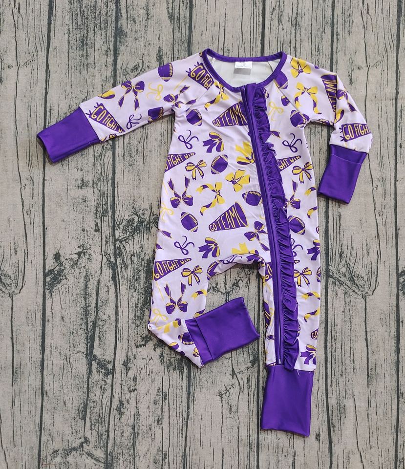 Design personnalisé enfants filles automne conception vêtements bébé filles sport équipe Cheer bleu couleur à manches longues Zippy barboteuse avec volants