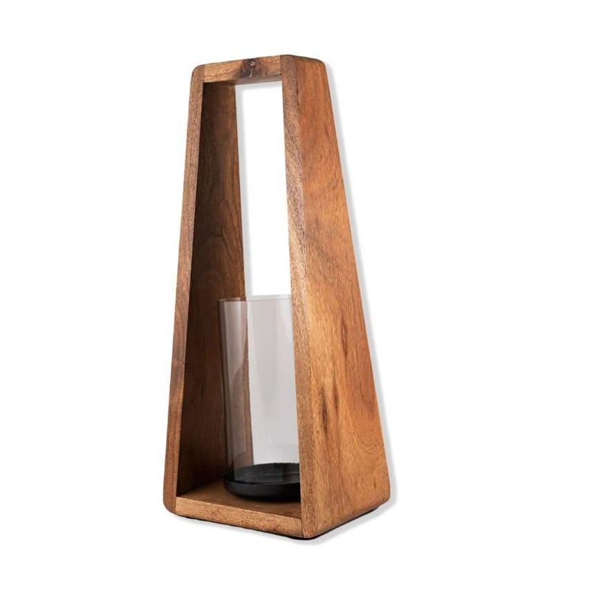 Conception personnalisée Lanterne rustique en bois Lanterne ouragan Bougeoir avec verre pour cheminée Éclairage extérieur