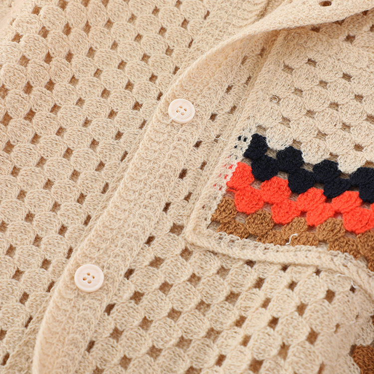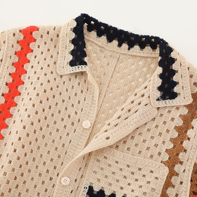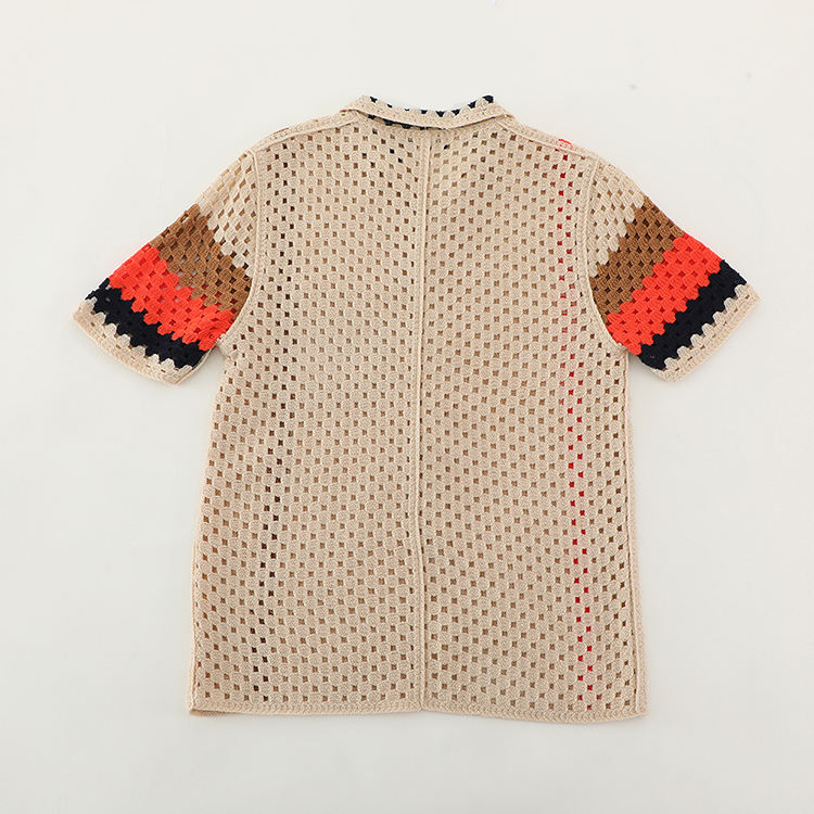 T-shirt Polo en Maille Tricotée Personnalisé avec Logo, Manches Courtes en Maille Creuse, Chemise en Crochet pour Garçon