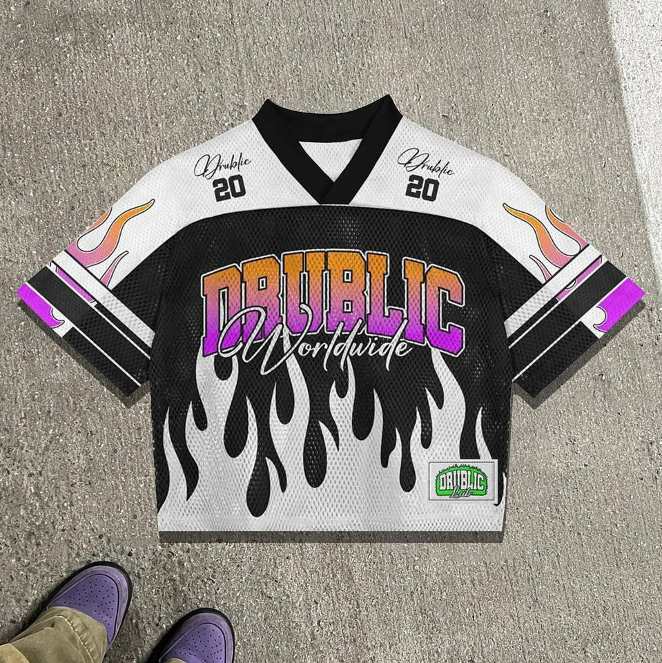 T-shirts en maille surdimensionnés pour hommes, style maillot de football, design et logo personnalisés, streetwear gothique Y2K, avec motif imprimé et col en V 2026