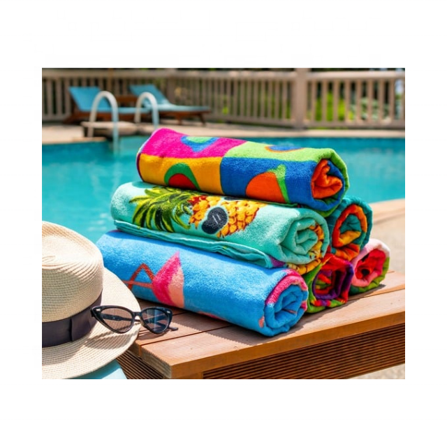 Design personnalisé Logo OEM ODM Impression numérique 100% coton brodé en peluche de luxe à séchage rapide écologique Hotel Resort Serviette de plage