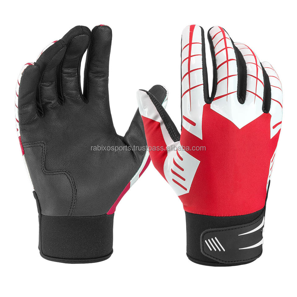 Gants de frappe en cuir de qualité supérieure avec logos personnalisés pour le baseball et le softball, antidérapants, à doigts entiers, avec sangle de poignet réglable