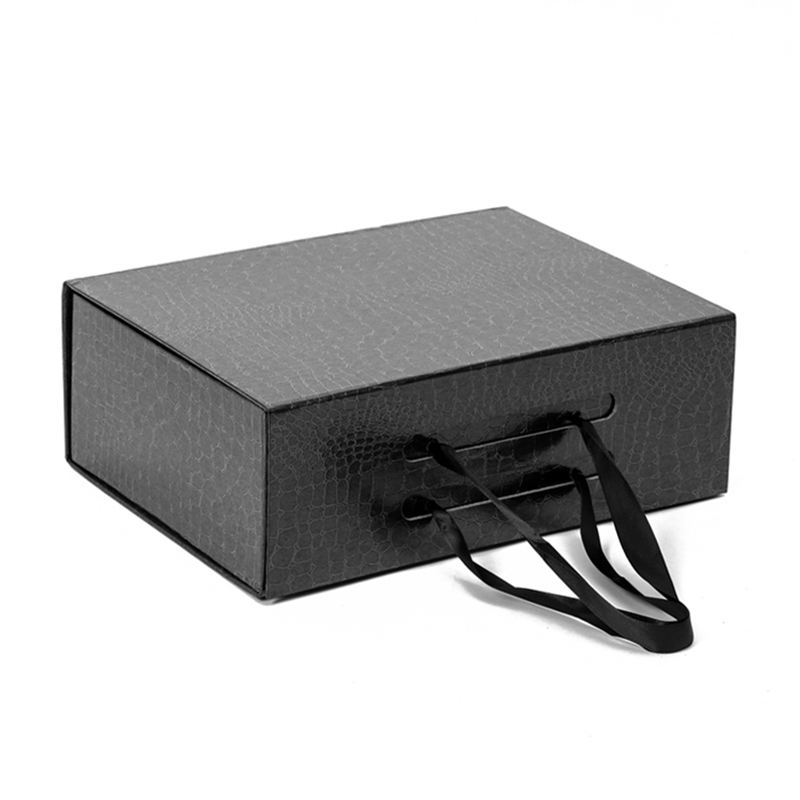 Boîtes cadeaux pliables de luxe noires sur mesure, estampage à chaud, emballage en carton rigide, boîte cadeau magnétique avec ruban