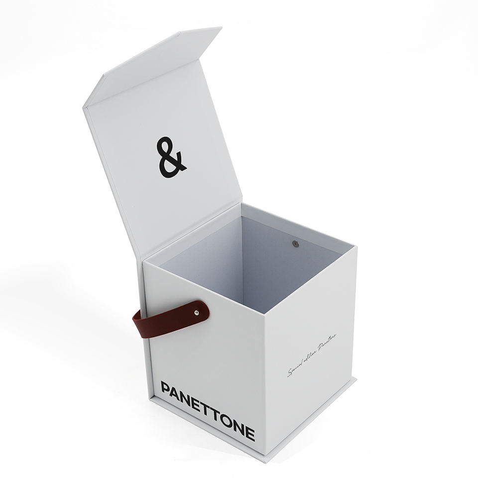 Boîtes à biscuits de luxe au design personnalisé emballage de cadeau de boulangerie en papier boîtes d'aliments à emporter avec poignées en cuir