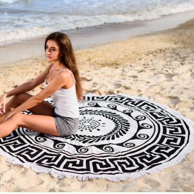 Design personnalisé Mandala rond serviettes de plage avec glands sans sable rond serviette de plage en gros en Inde.