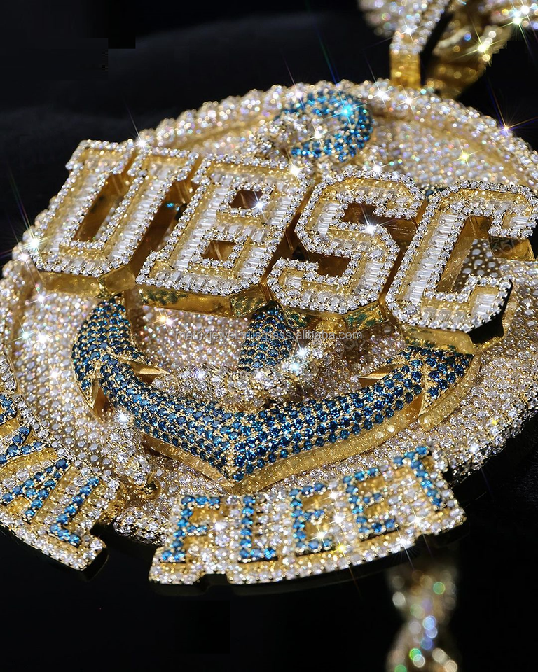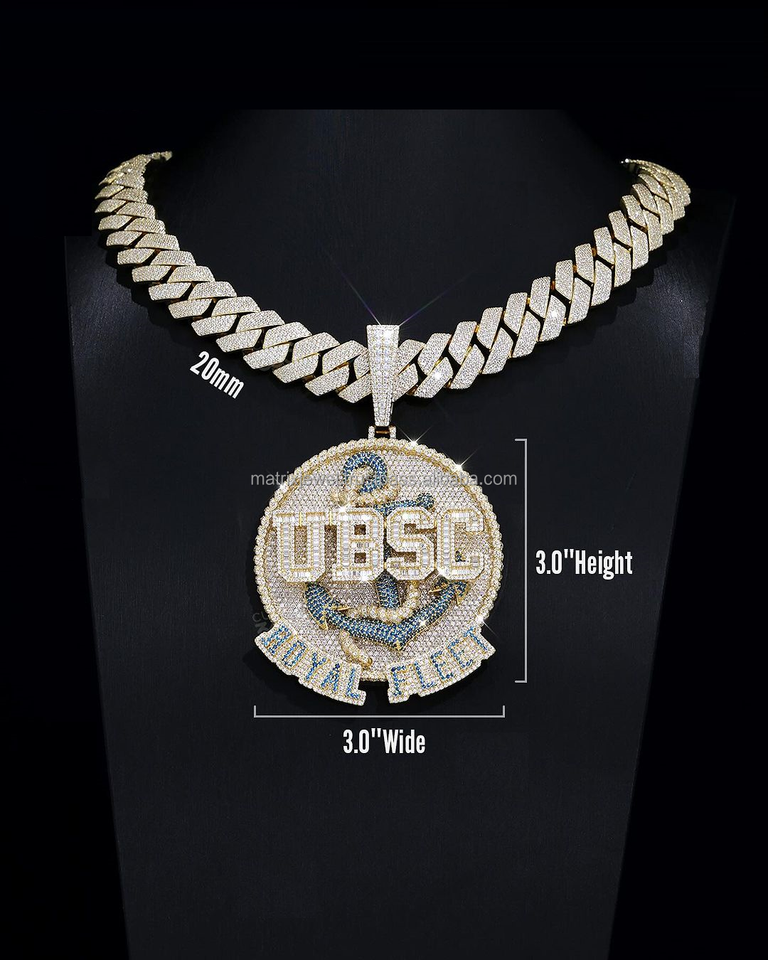 Pendentif en forme de médaille au design personnalisé en argent avec diamant Moissanite VVS Pendentif rond étincelant en plaque solide avec logo et nom