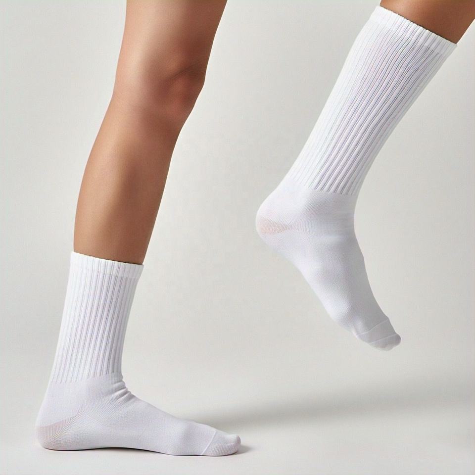 Design personnalisé pour hommes Crew Cotton Terry Bottom Mid Cap Chaussettes unisexes blanches de sport de basket-ball Chaussettes d'athlétisme