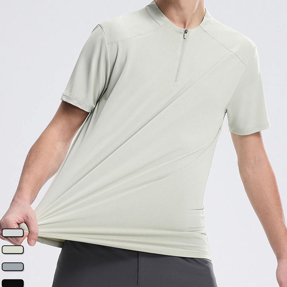 Chemises pour hommes sur mesure avec fermeture éclair, col montant, tricot décontracté, manches courtes, coupe classique, couleur unie, respirant, en nylon