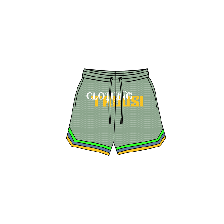 Shorts de sport en mesh pour homme, design personnalisé, impression par sublimation sur le devant, poches zippées, 100% polyester.