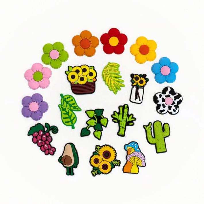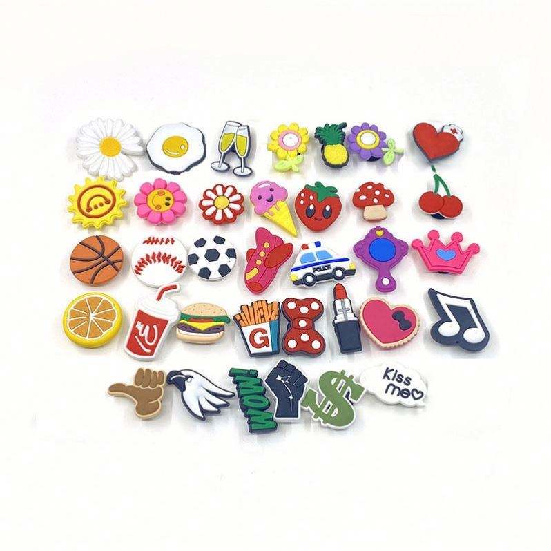 Breloques de chaussures en PVC à thèmes multiples, design personnalisé, vente en gros, boutons détachables DIY, décorations 2D mignonnes et tendance