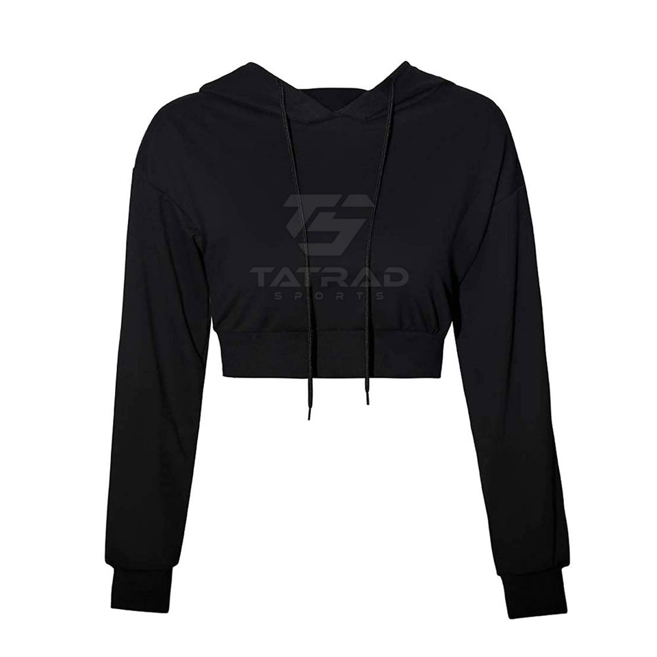Haut court à capuche pour femme, design personnalisé, couleur unie, logo frontal, 100% coton, respirant, coupe-vent, streetwear, usage extérieur, fabriqué au Pakistan