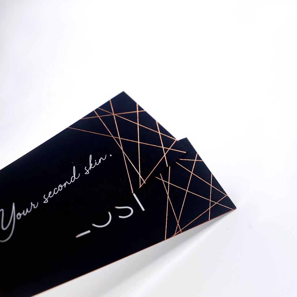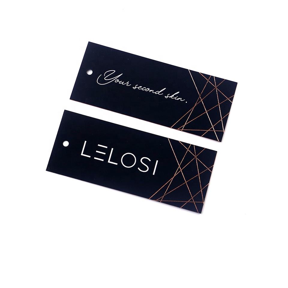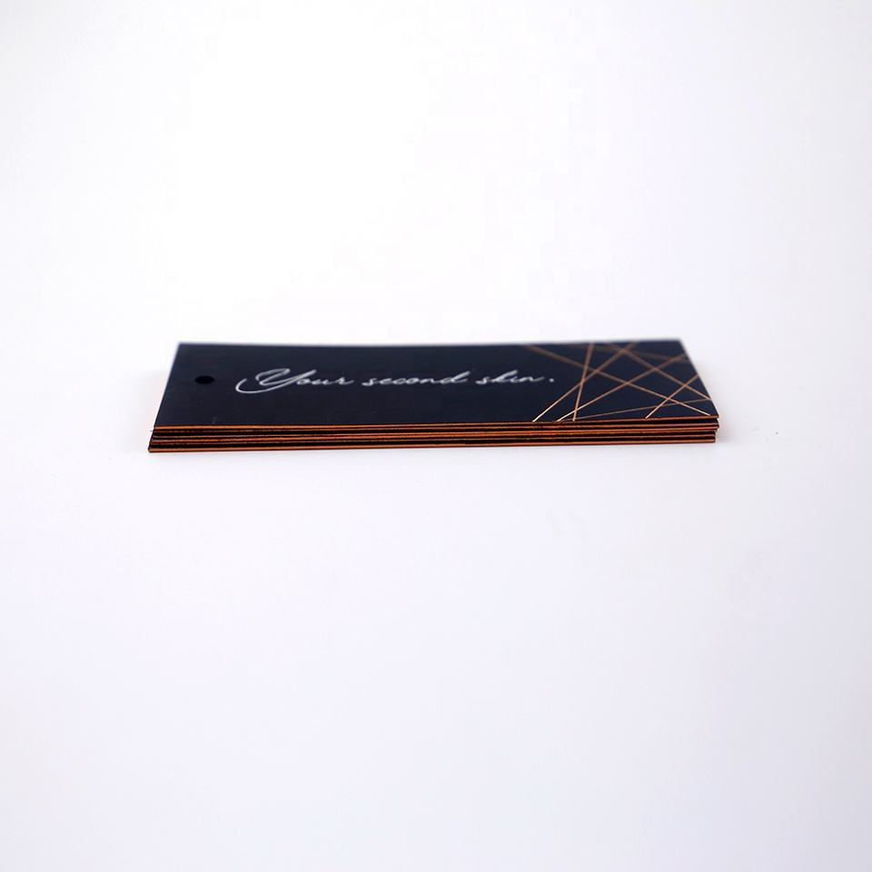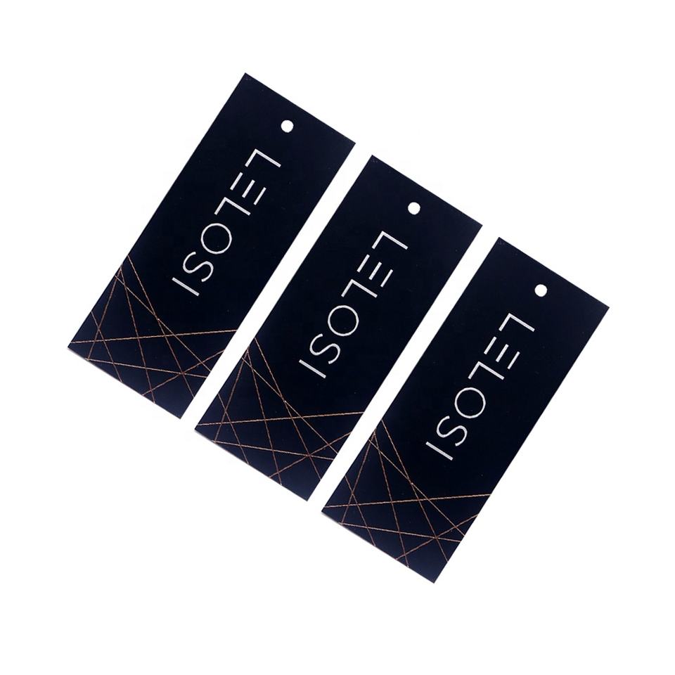 Conception personnalisée étiquette de prix étiquette volante de luxe en papier spécial noir, étiquettes en tissu en feutre d'estampage rose doré à chaud