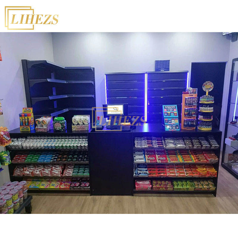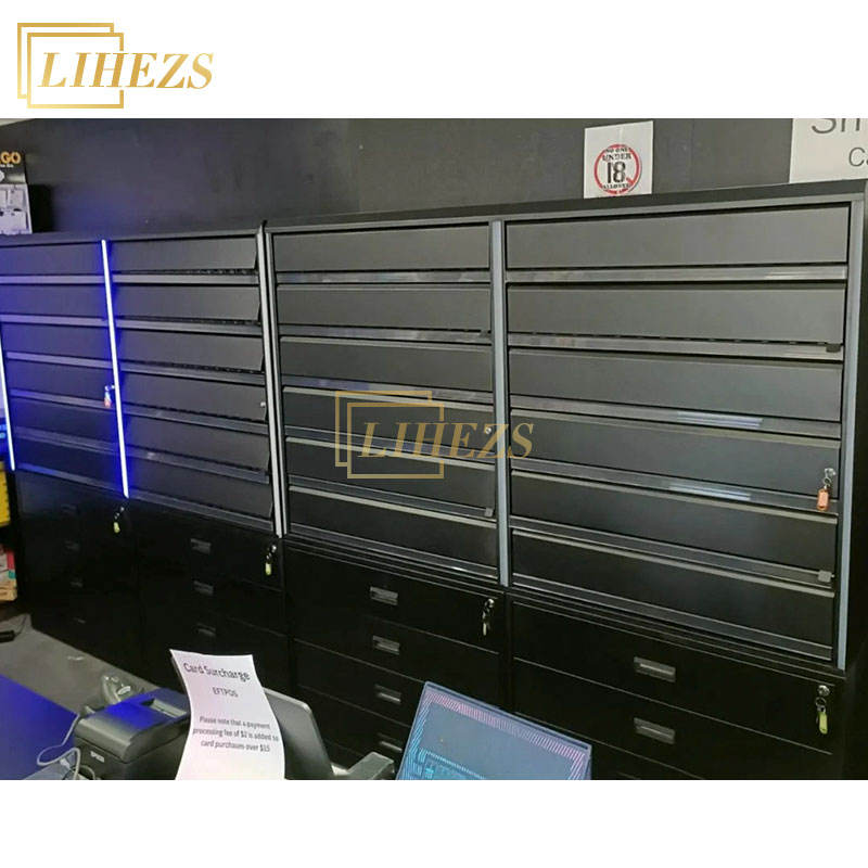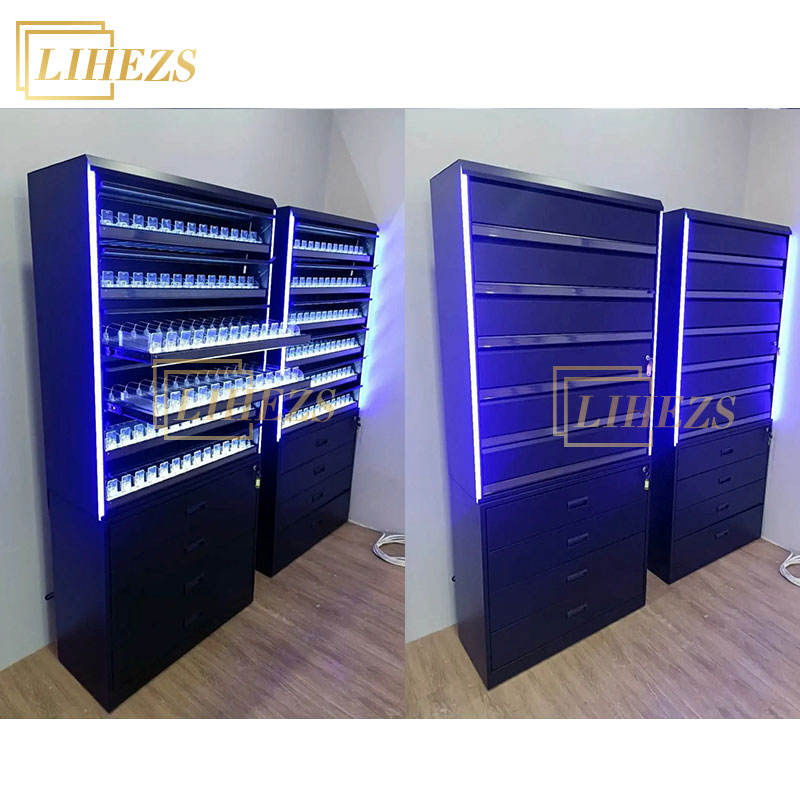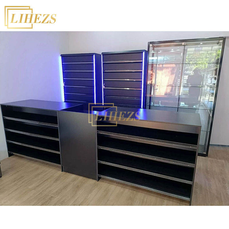 Meubles de présentation de tabac électronique sur mesure en bois et verre avec éclairage LED pour magasin