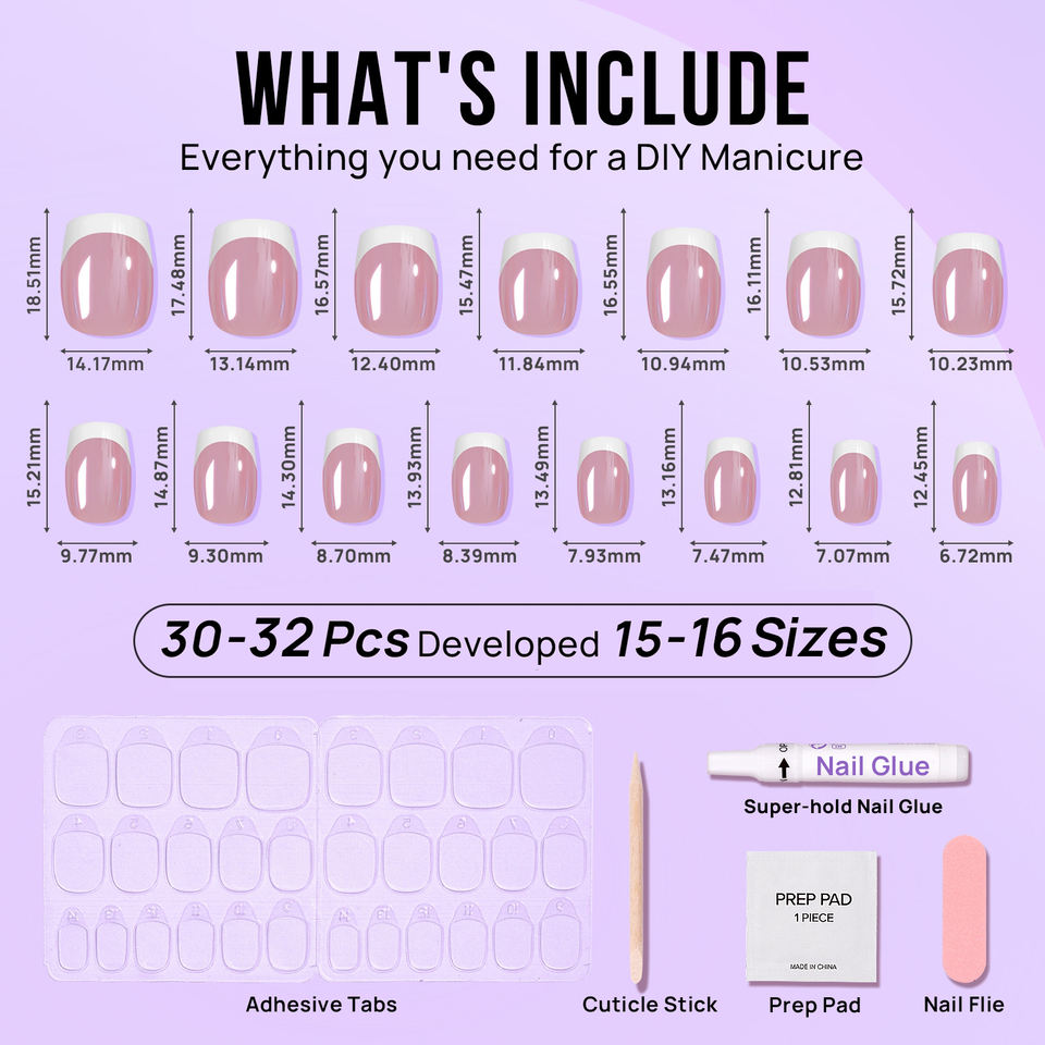 Outil:Conseils d'ongle, Colle, Lime à ongles, Coupe-ongles, Onglets adhésifs, Poussoir de cuticle, Forme d'ongle