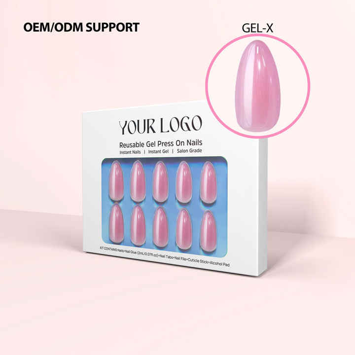 Conception personnalisée réutilisable Faux ongles de haute qualité Vente en gros Moyen Amande Rose Glacé Gel souple X Stick Press on Nails Vendeur