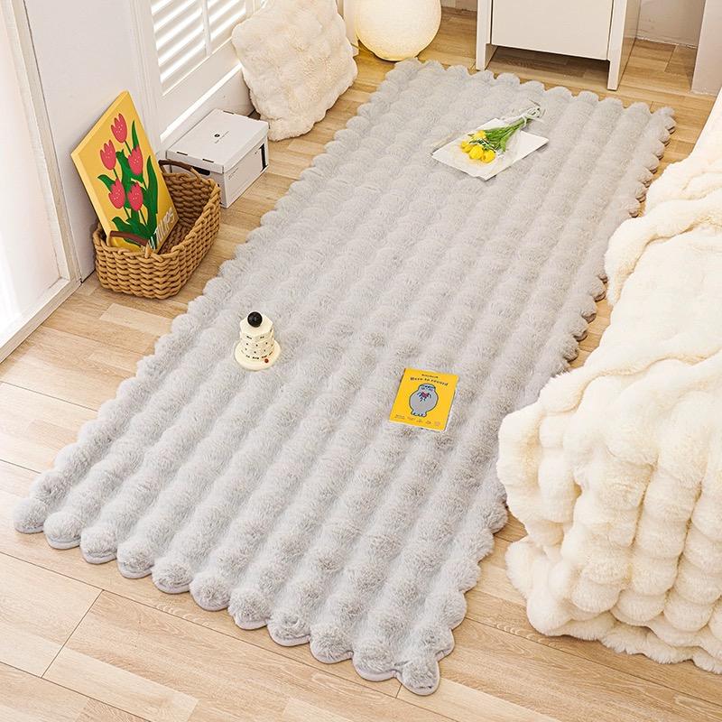 Tapis réversible en velours bulle et fausse fourrure, design personnalisé, lavable, pour la maison, style scandinave, pour dortoir et salon