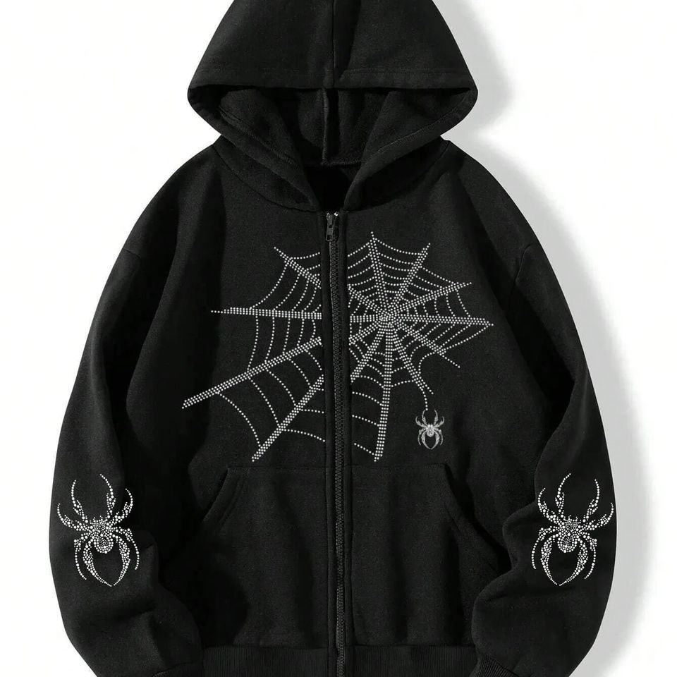Sweat-shirt à capuche oversize personnalisé avec fermeture éclair et strass, en mélange de coton 320 GSM, style streetwear bling pour hommes et femmes, hiver