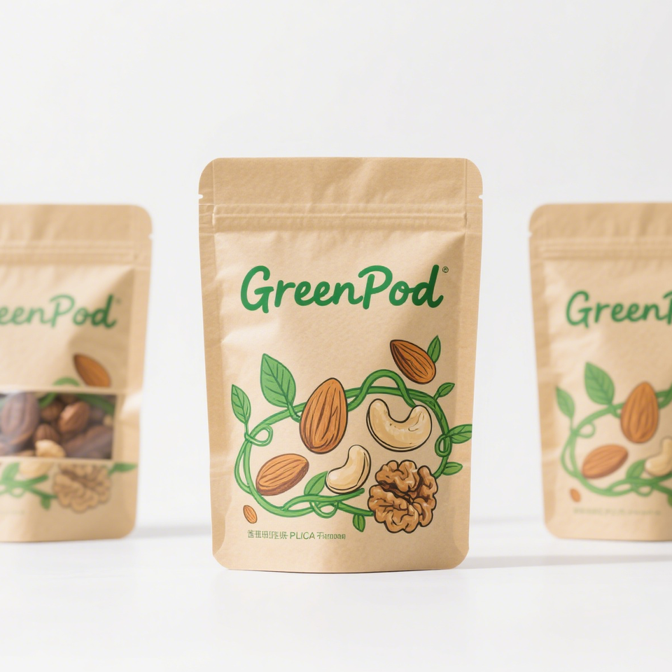 Conception personnalisée Sac en papier kraft anti-odeur avec fenêtre en plastique à fermeture à glissière debout pour les noix et les collations Emballage