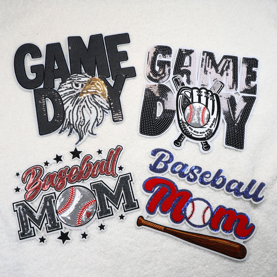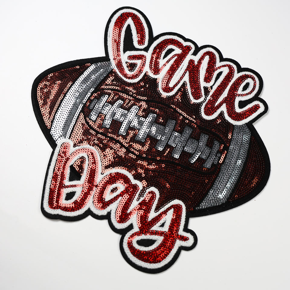 Patch thermocollant personnalisé en sequins pour le football, le baseball et les jours de match, pour chapeaux et vêtements