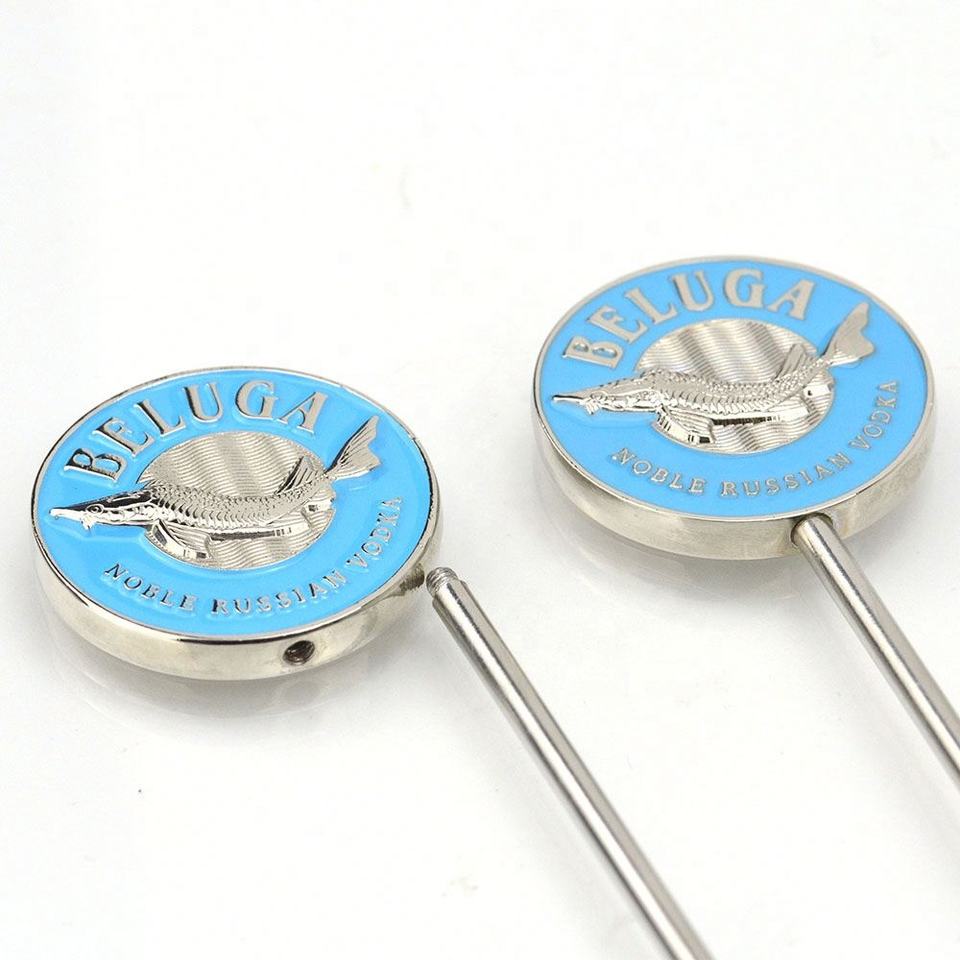 Design personnalisé tige d'agitation en acier inoxydable logo 3d bâton d'agitation de boisson en métal pour cocktail