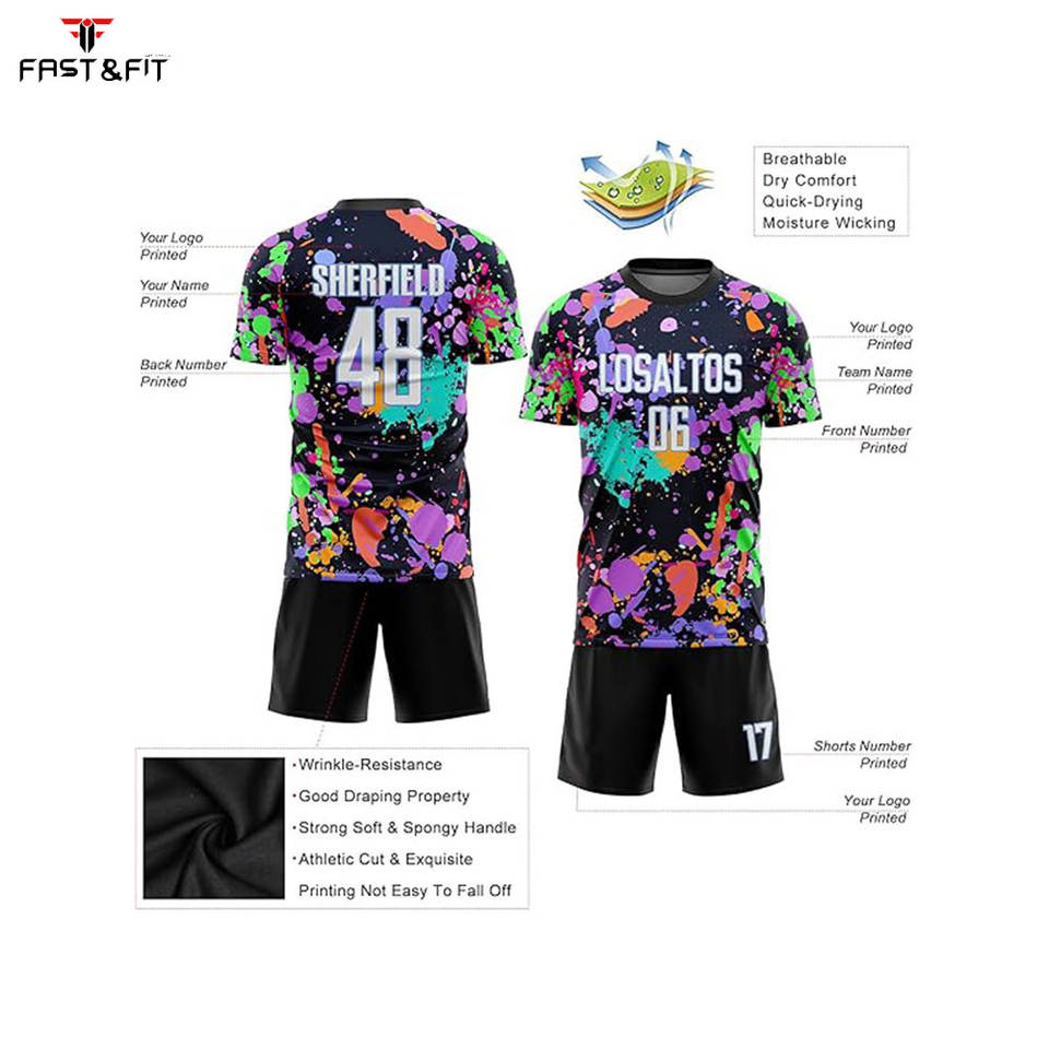 Maillot de football à manches courtes en coton personnalisé par sublimation pour hommes adultes, séchage rapide, respirant, uniforme d'équipe