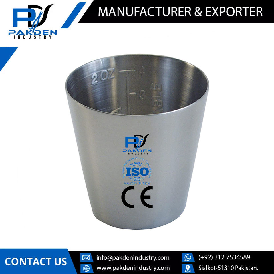 Tasse à médicaments manuelle en acier inoxydable chirurgical, conception personnalisée, graduée à l'intérieur, certifiée CE Classe I, OEM/ODM disponible