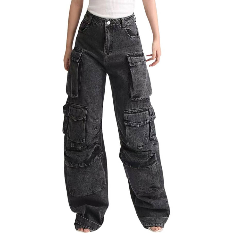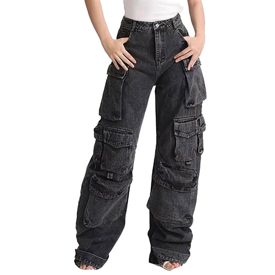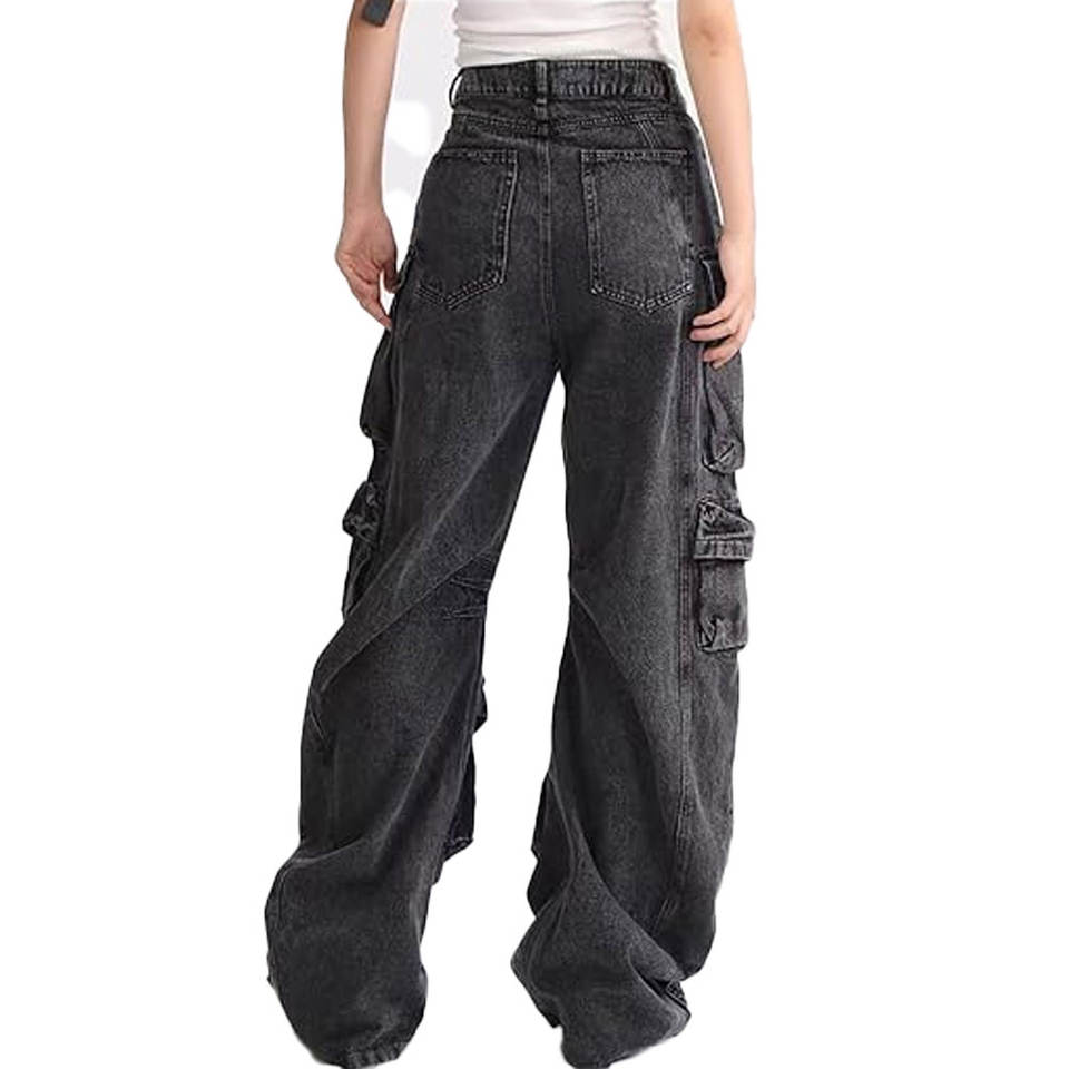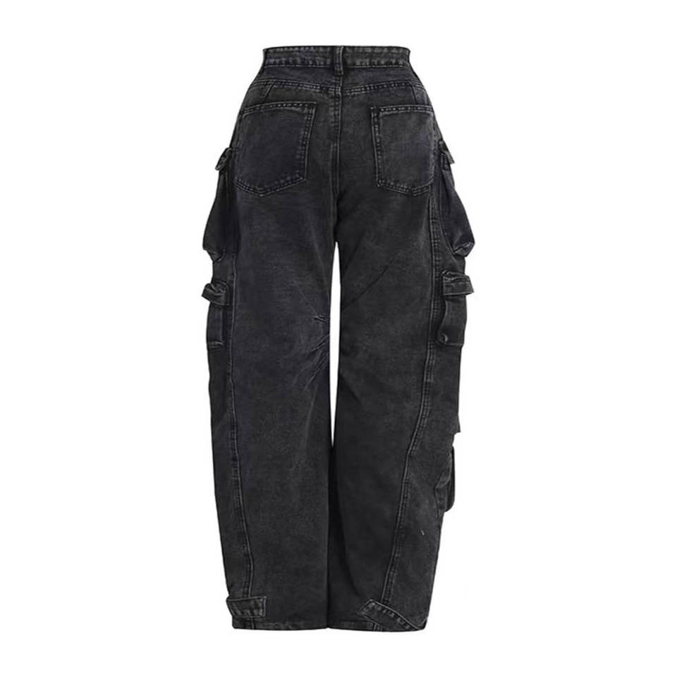 Jeans pour hommes à coupe droite, délavés, brodés, style vintage, design personnalisé, avec poches cargo surdimensionnées en denim coloré
