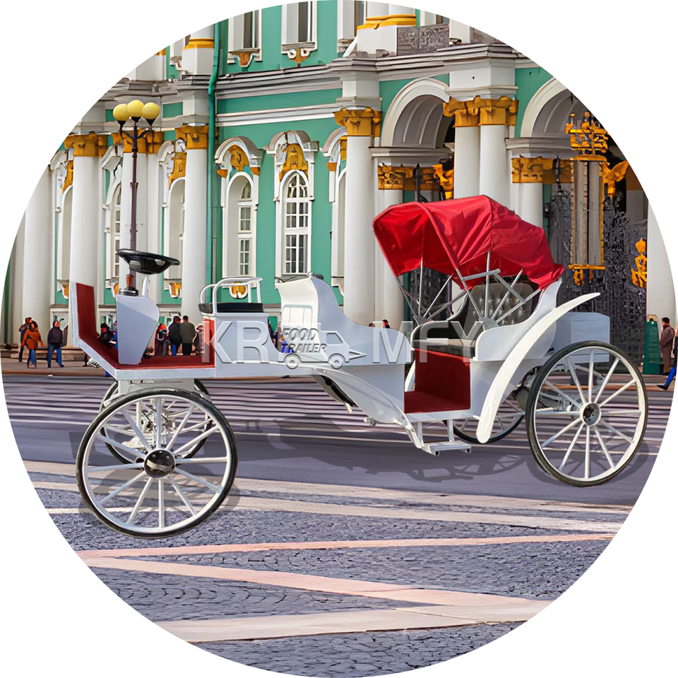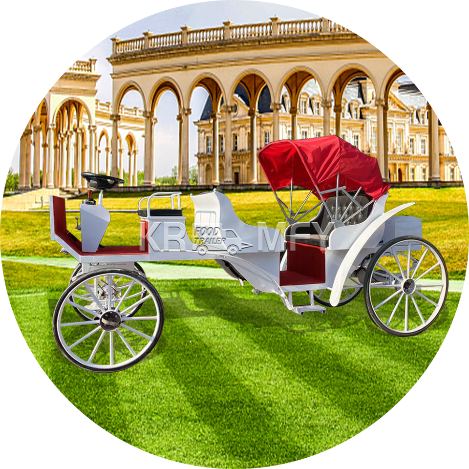 Calèche électrique blanche de tourisme dessinée à chevaux Design personnalisé Calèche touristique Buggy de tourisme Calèche touristique