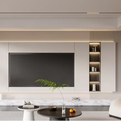 Meubles de salon intelligents, supports de télévision muraux sur toute la surface, design personnalisé, gris, meubles de télévision modernes