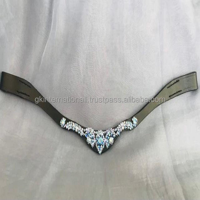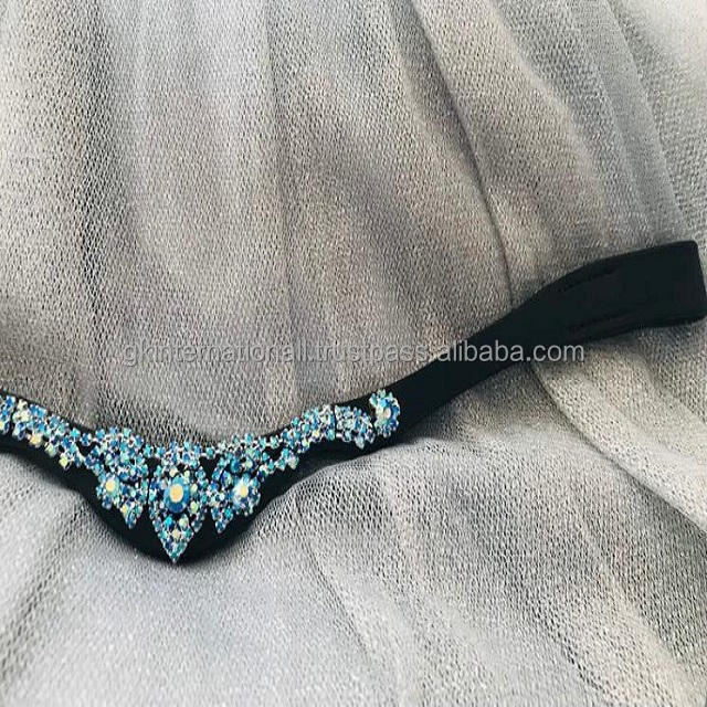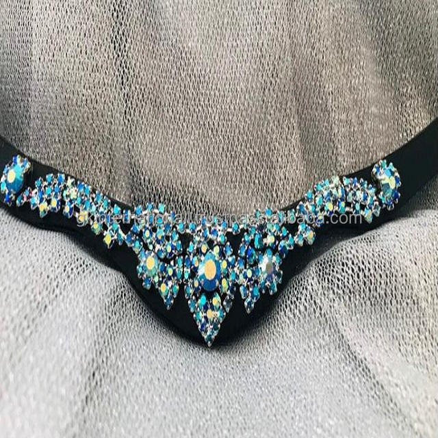 Bandeau à sourcils en cuir noir en forme de U, offre spéciale, cristaux d'eau argentés et turquoises, vente en gros,