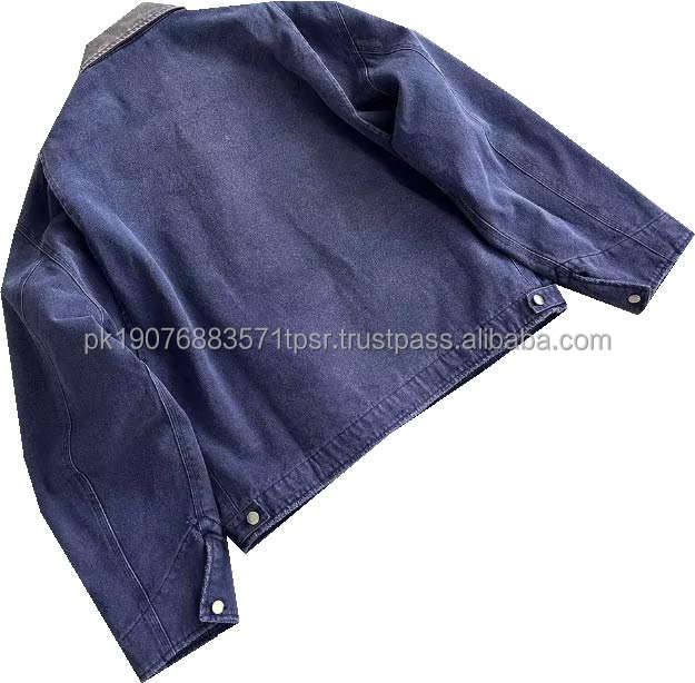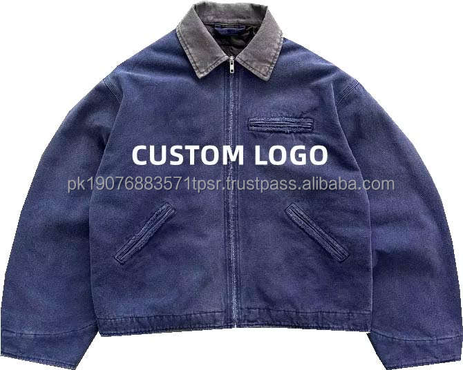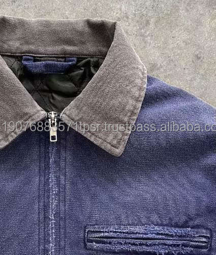 Custom Design Winter Style Quilted Lining Unisex Oversize Cropped Work Jacket Vintage Wash Distressed Duck Fabric Zipper Coat