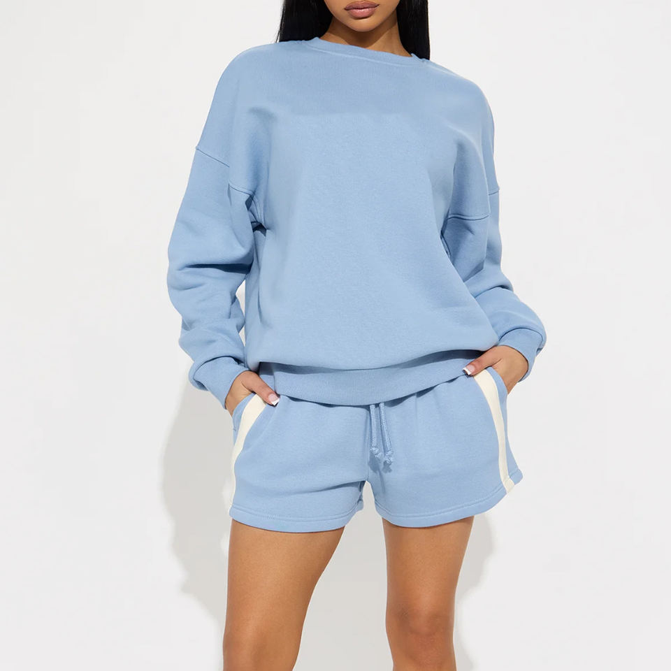 Ensemble de vêtements de sport pour femmes sur mesure, sweat-shirt et short, ensemble deux pièces / Vente en gros d'ensembles décontractés légers pour femmes en deux pièces, ensemble court 2026